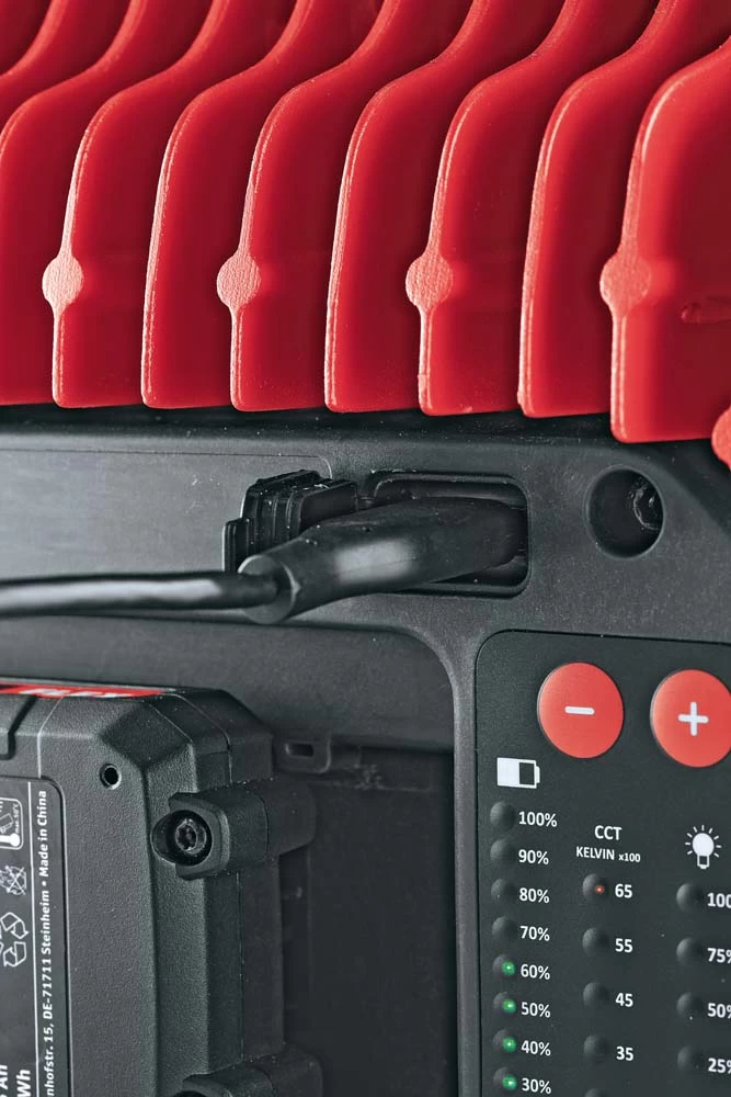 - Die All-Daylight-Funktion bietet eine Einstellung der Farbtemperatur in 5 Schritten von 2500K – 6500 K . Das ermöglicht eine genaue Anpassung an die Arbeitsaufgabe