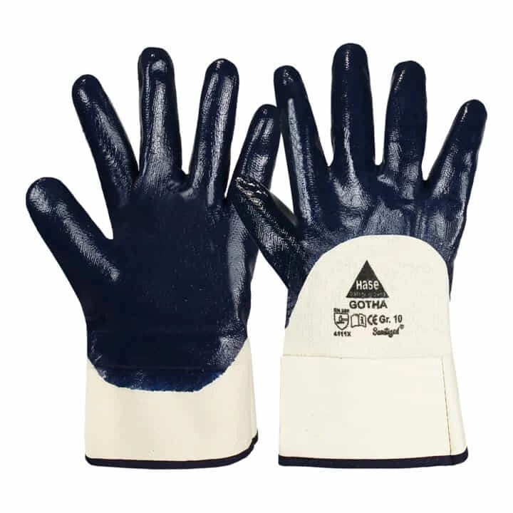 - Nitril-Arbeitshandschuh aus Baumwolle mit 3/4 Nitril Beschichtung und Canvas-Stulpe