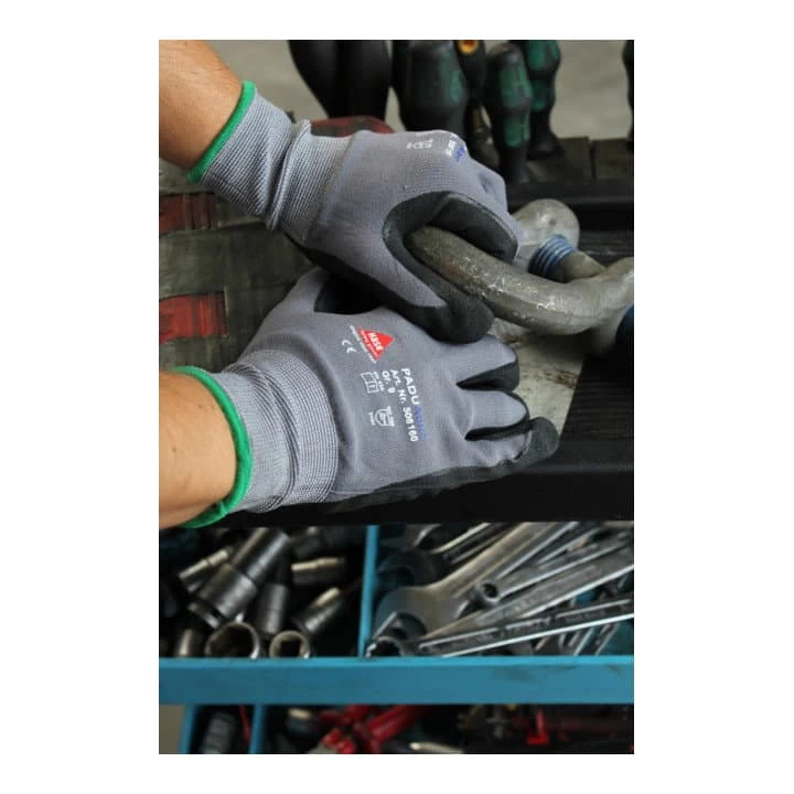 - Wasserbasierte Nitrilschaum Beschichtung an Handinnenfläche und Fingerkuppen