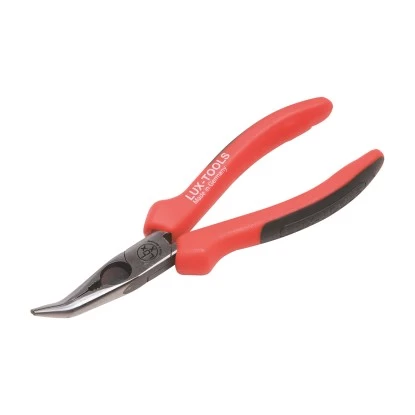 Die LUX-TOOLS Telefonzange besitzt um 45° gebogene Backen. Bei dem Griff handelt es sich um einen 2-Komponenten Kunststoffgriff mit Abgleitschutz. Die Schneiden sind induktiv gehärtet und somit ideal für mittelharte und weiche Drähte geeignet. Die Länge beträgt 160 mm.