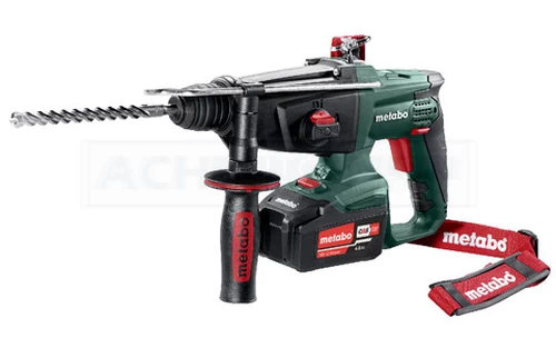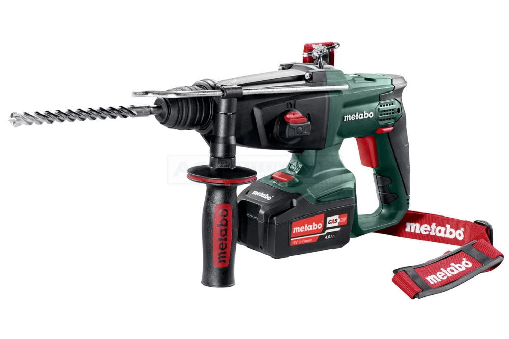 Hammerfutter für Werkzeuge mit SDS-plus-Einsteckende, gummierter Zusatzhandgriff, Bohrtiefenanschlag, Tragegurt, 2 Li-Power Akkupacks (18 V/4,0 Ah), Ladegerät ASC 55 “AIR COOLED”, Kunststoffkoffer