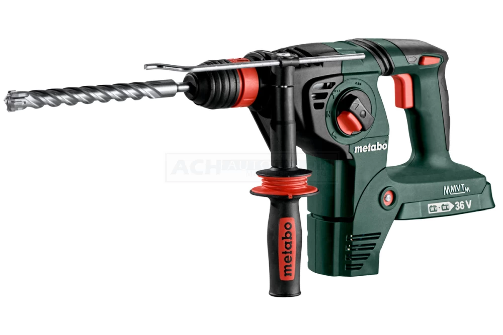 Hammerfutter für Werkzeuge mit SDS-plus-Einsteckende, Schnellspannbohrfutter für Werkzeuge mit zylindrischem Schaft, Metabo VibraTech (MVT)-Zusatzhandgriff, Bohrtiefenanschlag, MetaLoc Koffer, ohne Akkupack, ohne Ladegerät