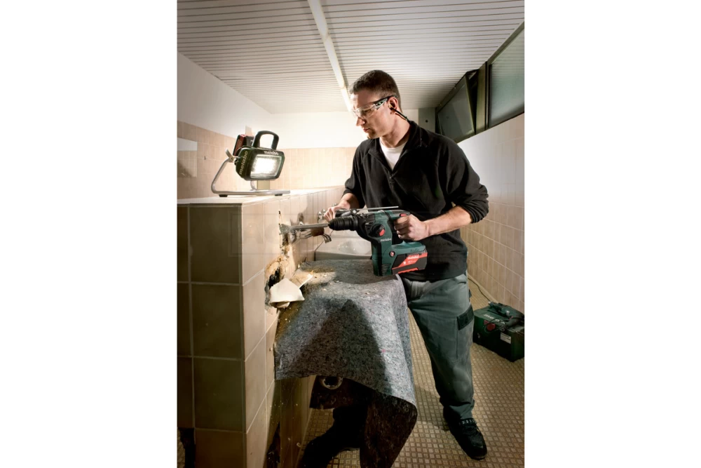 Hammerfutter für Werkzeuge mit SDS-plus-Einsteckende, Schnellspannbohrfutter für Werkzeuge mit zylindrischem Schaft, Metabo VibraTech (MVT)-Zusatzhandgriff, Bohrtiefenanschlag, 2 Li-Power Akkupacks (36 V/5,2 Ah), Schnellladegerät ASC Ultra “AIR COOLED“, Kunststoffkoffer