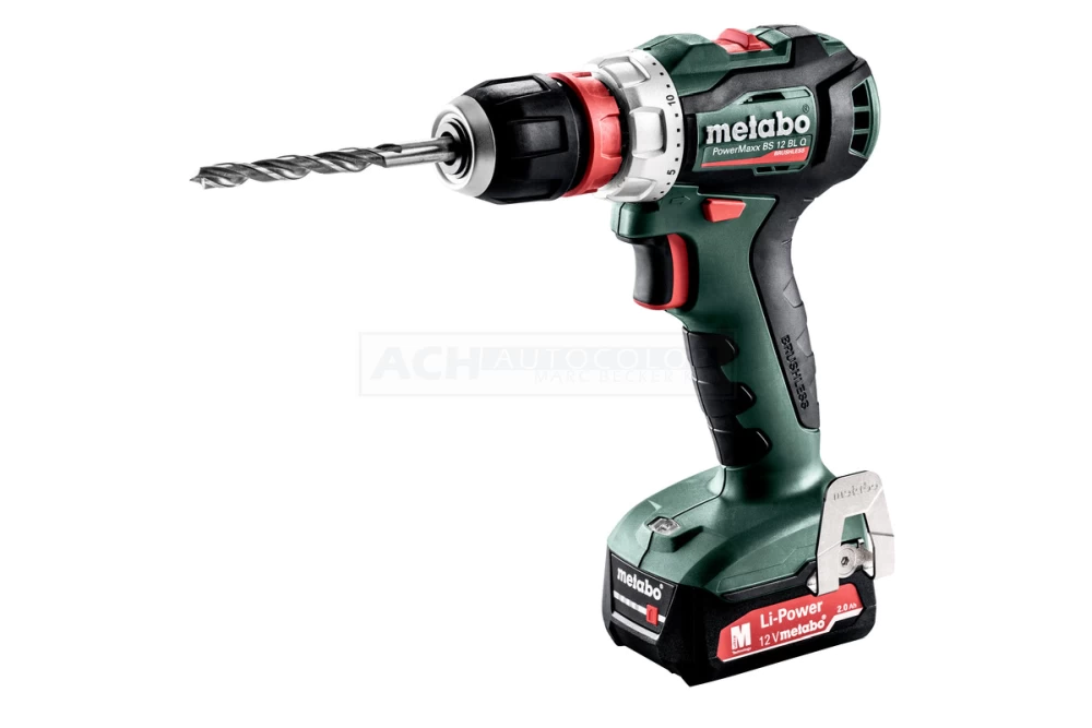 Schnellwechselbohrfutter, Gürtelhaken und Bitdepot, 2 Li-Power Akkupacks (12 V/2,0 Ah), Ladegerät SC 30, Kunststoffkoffer