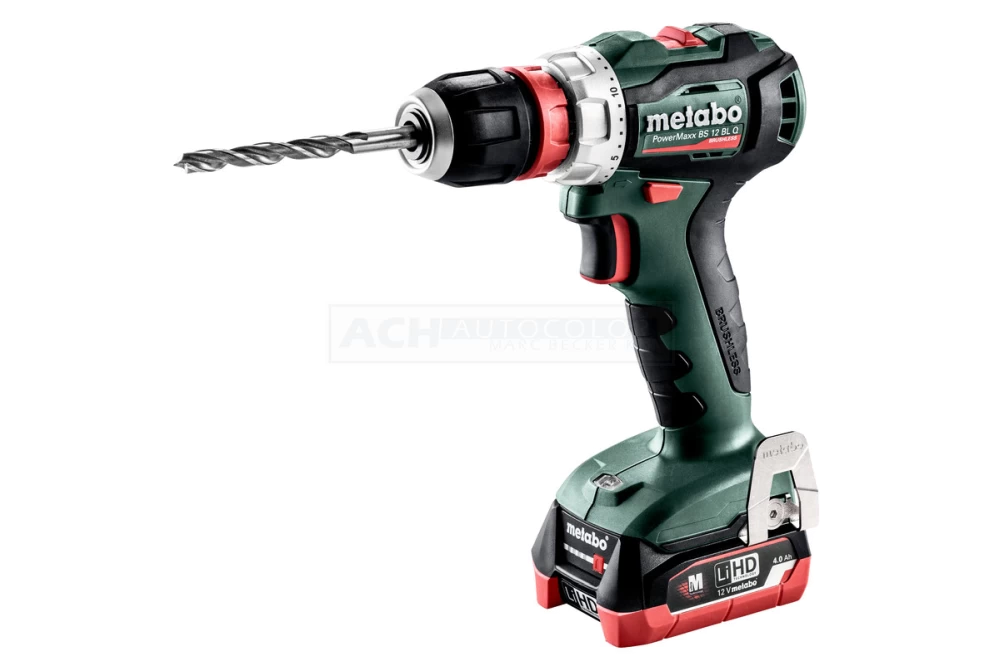 Schnellwechselbohrfutter, Gürtelhaken und Bitdepot, 2 LiHD Akkupacks (12 V/4,0 Ah), Ladegerät ASC 55 “AIR COOLED”, Kunststoffkoffer