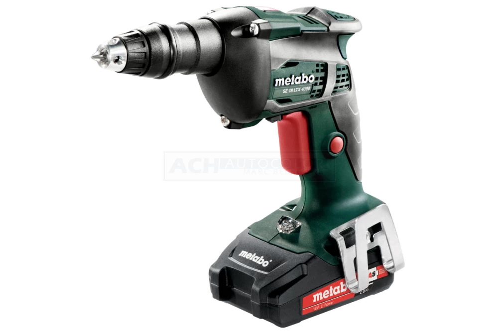 Tiefenanschlag, Magnetischer Bithalter 1/4” (6,35 mm), Phillips-Schrauber-Bit Gr. 2/25 mm, Gürtelhaken, 2 Li-Power Akkupacks (18 V/2,0 Ah), Ladegerät ASC 55 “AIR COOLED”, Kunststoffkoffer