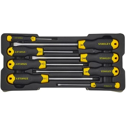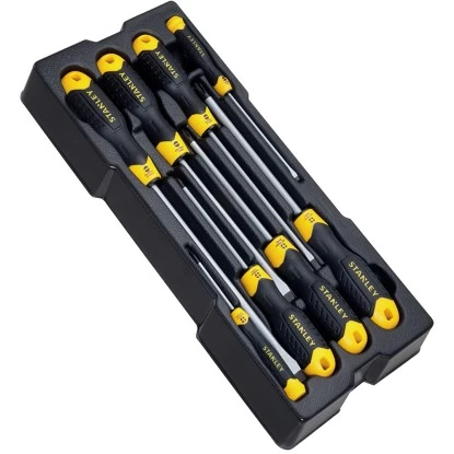 Das 8-teilige Stanley Modul Schraubendreher CushionGrip-Set ist Teil des Transmodul Werkstattwagen Systems. Organisieren Sie Ihren Werkstattwagen mit dem neuen Transmodul System, dem modularen System an Mechanikerwerkzeugen. Ein breites Sortiment verschiedener Module, flexibel und individuell einsetzbar, ganz wie Sie es benötigen. Stellen Sie sich Ihren persönlichen Werkstattwagen zusammen, passend zu Ihren täglichen Aufgaben.