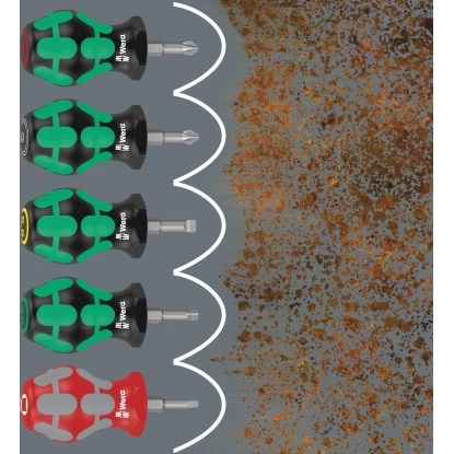 Der Wera Schraubendreher-Satz Mix ist eine anwendungsgerechte Mischung aus Werkstattschraubendrehern mit normal langer Klinge und besonders kleinen Stubby Schraubendrehern mit kurzer Klinge für schwer zugängliche Bereiche. Der 2-komponentige Kraftform Griff mit seiner praktischen Kombination aus Hart- und Weichzonen ermöglicht festes Zupacken und präzises Arbeiten. Die Klingen weisen alle Vorzüge der Wera Bit-Technologie auf. Spezielle Oberflächenvergütung der Klingen für hohen Korrosionsschutz und optimale Passgenauigkeit in der Schraube. Der Sechskantabrollschutz verhindert lästiges Wegrollen am Arbeitsplatz.