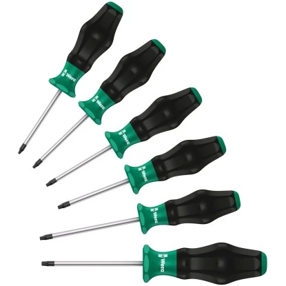Das aufwendige Härteverfahren des TX-Schraubendrehersatz garantiert eine lange Nutzbarkeit der Spitze, erhöhten Korrosionsschutz und eine exakte Passgenauigkeit. Kompaktes Werkzeug-Set mit 6 Schraubwerkzeugen.