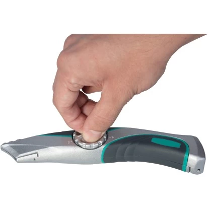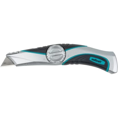 Dieses Wolfcraft Profi-Trapezklingen-Messer mit Feststehklinge ist ideal zum Schneiden von festen Materialien wie Teppich, Gipskarton, Vinyl, Dachpappe und vieles mehr. In dem robusten Metallgehäuse befindet sich ein integriertes Klingenmagazin, das sich über den Schnelldrehverschluss komfortabel öffnen lässt. Der Klingenwechsel wird durch einen Magnet unterstützt, so kann er schnell, sicher und werkzeuglos erfolgen. Im dazugehörigen Köcher aus robustem ABS-Kunststoff ist das Messer sicher untergebracht und mit dem Clip schnell griffbereit am Gürtel befestigt.